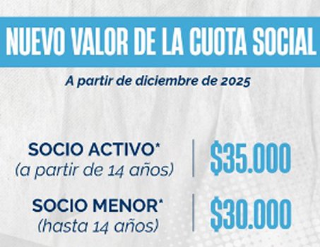 Atlético Tucumán a través de sus redes sociales informó los nuevos valores de la cuota social a partir de Diciembre de 2025. Ello permitirá mantener la antigüedad, un valor estatutario clave para poder decidir el futuro del club; conservar el ingreso al programa Club La Gaceta y además garantiza el acceso al Complejo Salmoiraghi y la participación en la vida institucional de la institución. (Sábado 29/11/25 - 11:00 hs)